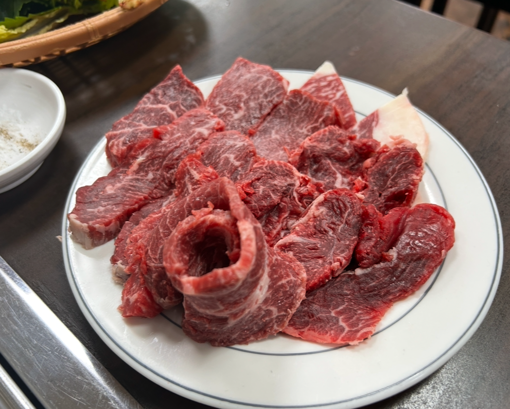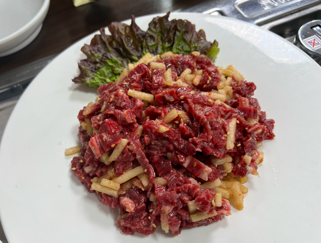 처음 방문했을대는 육회가 안된다고 하여 육회를 먹지 못하고 육사시미를 먹었습니다. 그러니 육회를 좋아하시는 분들은 미리 전화로 육회가 가능한지 문의하시면 좋을 거 같습니다.