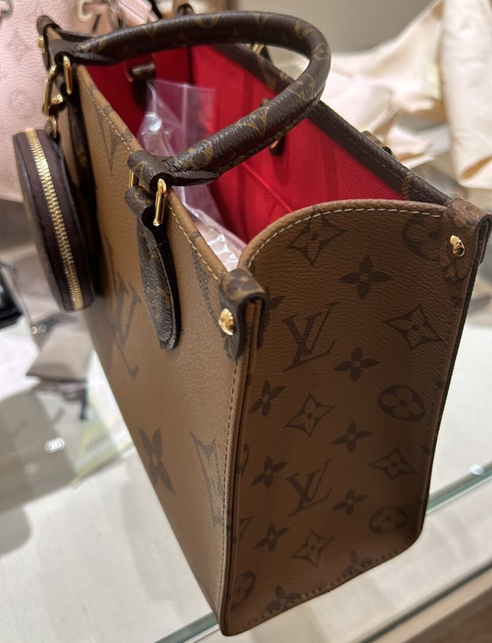 지난주에 우연히 백화점에 들렀는데 마침 루이비통에 대기가 얼마 없고 예전부터 보고 싶었던 가방이 있어서 구경도 할 겸 가게 되었습니다. 눈여겨본 가방은 "루이뷔통 온 더고 토트백"인데 가볍고 수납력도 좋아서 직접 착용해 보기로 했습니다.