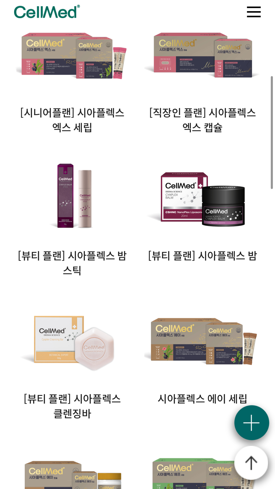 그럼 셀메드 Cellmed의 시아플렉스 제품의 밤 제형과 가격 등 자세히 소개해드릴게요. 추가로 셀메드에는 아래와 같이 다양한 시아플렉스 종류의 제품들도 많이 있어서 다른 제품도 알아보겠습니다.