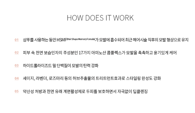 펌이나 매직등의 시술 후에 스타일이 오랜 기간 지속되기 위해서 유지력을 높여주며, 헤어드라이기나 고데기 열기구 없이도 쉽게 머리를 세팅할 수 있게 도와주는 샴푸입니다.