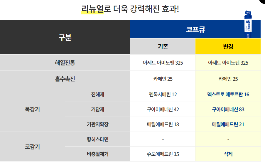 콜대원이 새롭게 리뉴얼이 되면서 제품 구성이 강화되고 새로운 디자인과 더욱 좋아진 맛으로 바뀌게 되었습니다. 그중에서 바뀐 성분 구성에 대해서 자세히 소개해드리겠습니다.