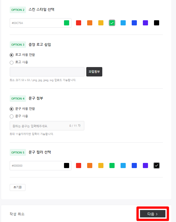 3단계 : 그러면 첫 번째로 '코드디자인' 설명하는 화면이 나옵니다. 우리는 링크를 생성하는 게 주목적이기 때문에 해당 화면에서는 선택할 게 없고, 맨 아래 '다음'버튼을 클릭합니다.