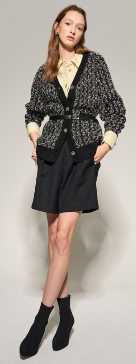 은은하게 반짝이는 다채로운 원사가 믹스된 카디건입니다. 여유로운 핏과 적당한 기장감으로 데일리로 착용이 가능합니다. 그리고 벨트도 함께 구성하여 실루엣을 좀 더 포멀 하게 연출이 가능하여 오피스룩으로도 제격입니다.